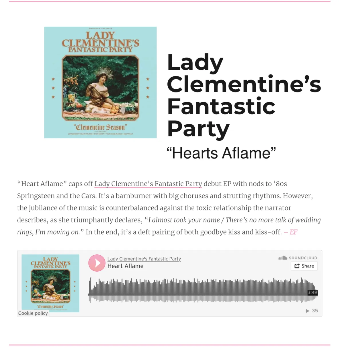 with apt portions of 60’s ye-ye on yonder with a starry-eyed twang and a bit of Jesus and Marychain stained background distortion. This dreamy ATLien debutant’s recent debut in a wide-pool of musical mavens has shown she is no indie ingenue